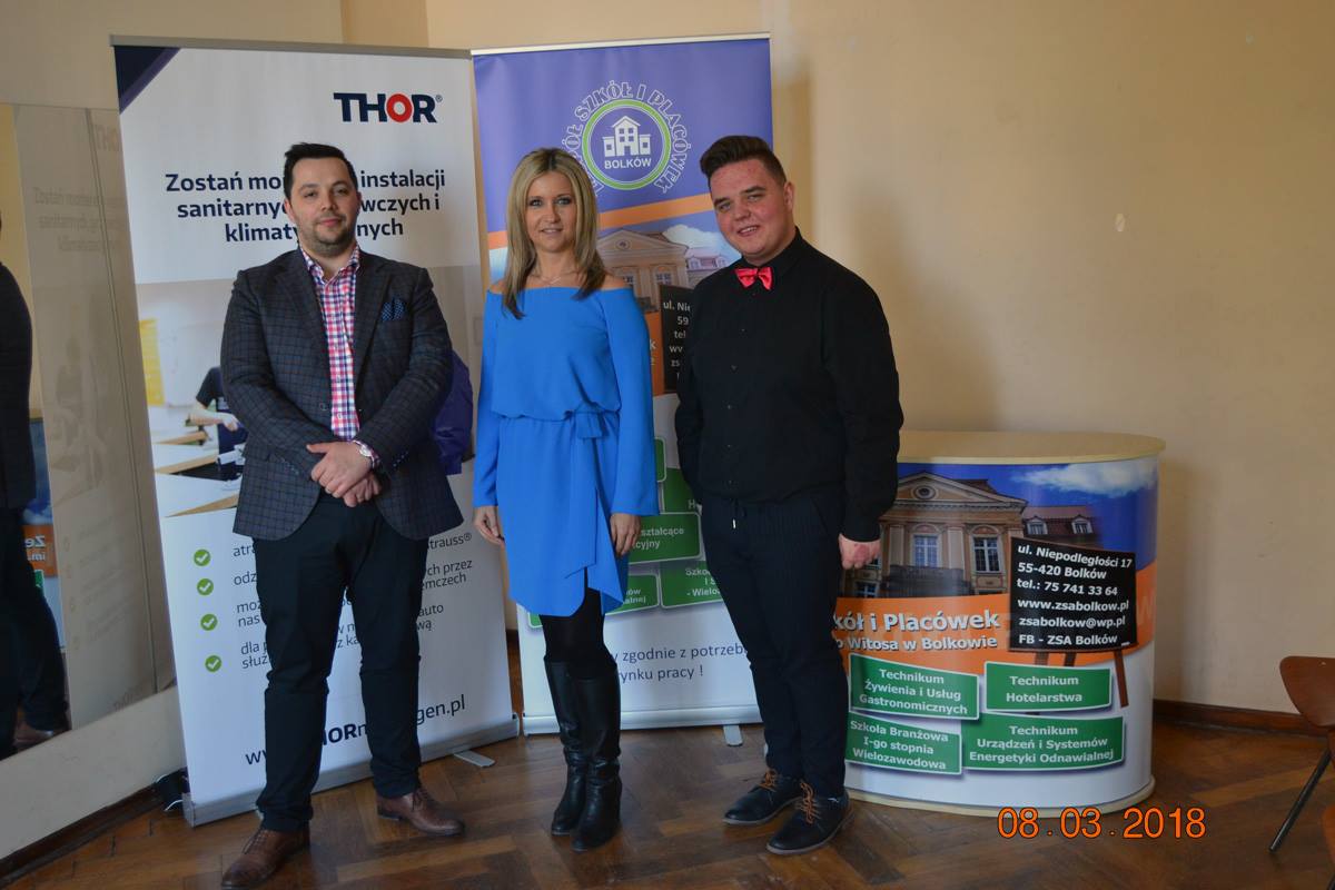 Dnia 09.03.2018r. w naszej szkole odbyła się wycieczka zawodoznawcza w ramach Dni Otwartych Szkoły. W tym roku naszą szkołę odwiedziło prawie 200 uczniów klas programowo najstarszych ze Szkół Podstawowych: w Bolkowie, Marciszowie, Jaworze i Wiadrowie. Każdorazowo młodzież była uroczyście witana przez panią Dyrektor Beatę Zalewską oraz przewodniczącego Samorządu Uczniowskiego – Konrada Wronę. Gościliśmy również pana Starostę Stanisława Laskowskiego oraz pana Wicestarostę Arkadiusza Baranowskiego. Dzięki prezentacji multimedialnej wszyscy mieli okazję zapoznać się z działaniami prowadzonymi w naszej placówce oraz oferowanymi kierunkami kształcenia, w tym nowością – technik inżynierii sanitarnej. Po zakończeniu oficjalnej części spotkania nastąpiło zwiedzanie stanowisk zawodowych mieszczących się na terenie naszej szkoły, które zostały w profesjonalny sposób przygotowane przez uczniów i nauczycieli. Były to następujące pracownie i pokazy: